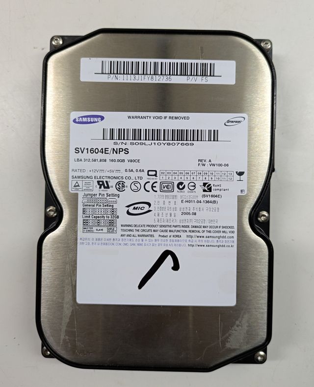 Dettagli del prodottoHard Disk SAMSUNG 160GB.IDE Modsello SV1604E Desktop Hard Drive