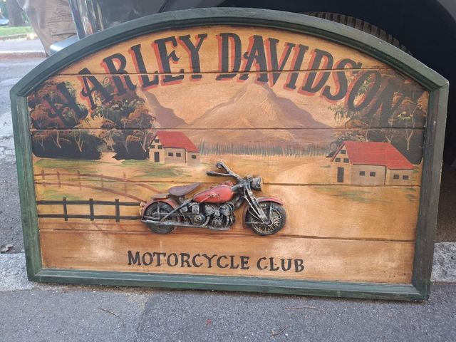 Dettagli del prodottoBellissimo quadro in legno raffigurante una Harley Davidson. Il pezzo è dipinto a mano e presenta una moto in rilievo.