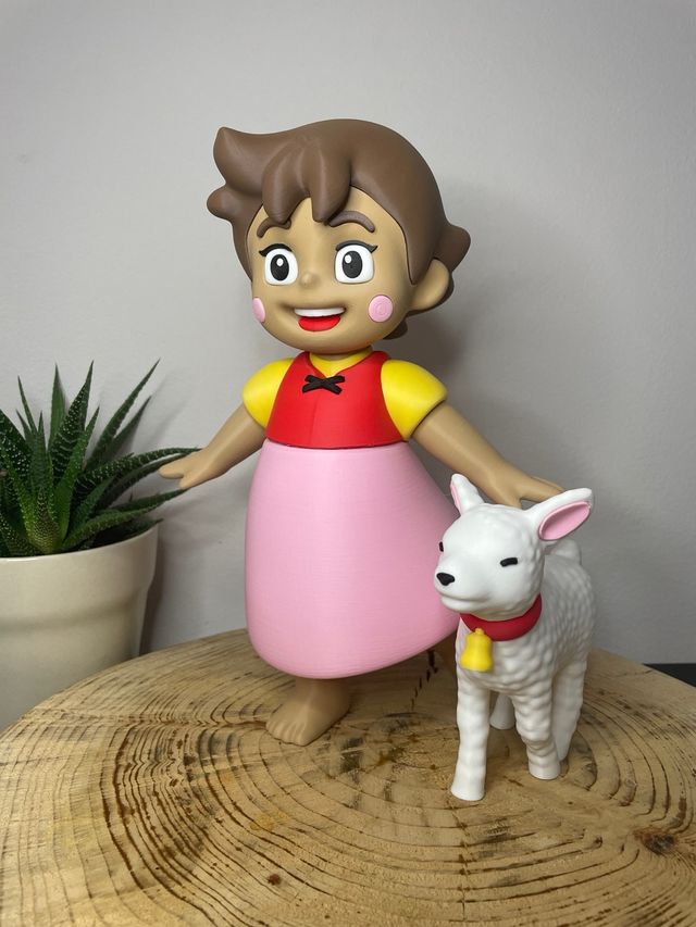 Set di statuine raffiguranti Heidi e il suo agnello Fiocco di Neve. - Personaggi iconici della serie animata. - Dettagli curati e colori vivaci. Heidi 20cm