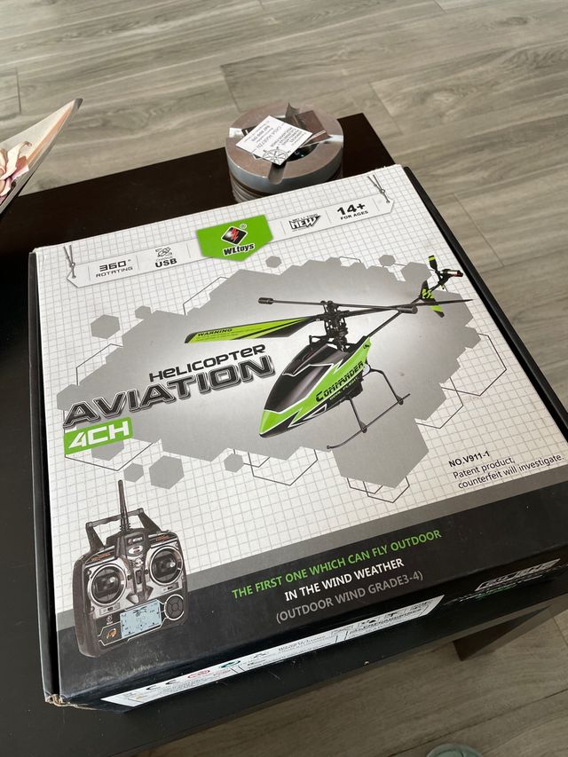 In realtà ci sono due elicotteri, quello che vola e l'altro in pezzi di ricambio, 8 batterie, lo speciale caricabatterie a due batterie (con il trasmettitore stesso puoi caricare) tre modelli di carenatura per metterlo nel colore che desideri...