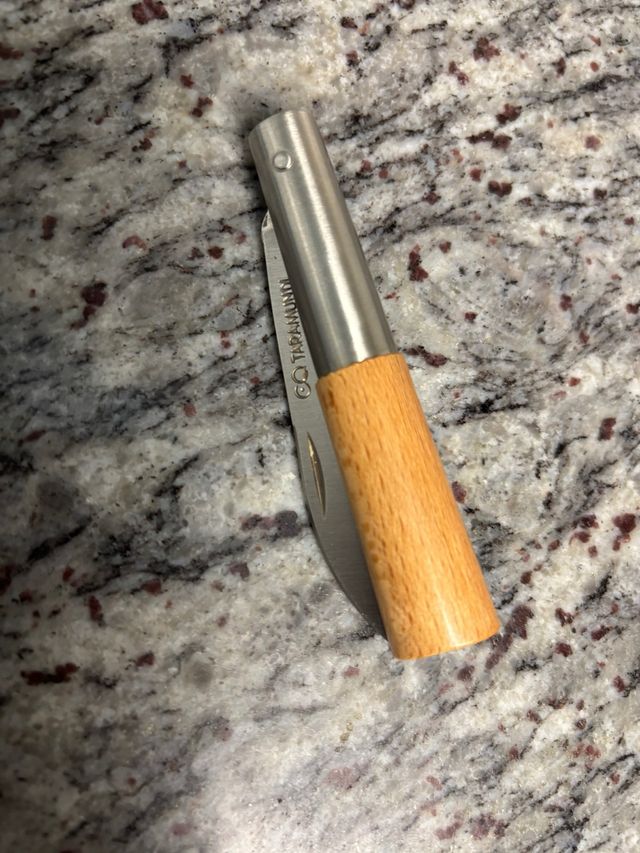 Dettagli del prodottoStrumento tascabile con manico in legno di faggio trattato a vapore e lama in acciaio con blocco. Marca: CQ Taramundi. Materiale del manico: Faggio trattato a vapore. Materiale della lama: Acciaio ACX-390. Dimensioni lama: 70mm. Lunghezza aperta: 160 mm. Lunghezza chiusa: 85 mm. Diametro: 15 mm. La descrizione è stata tradotta automaticamente.