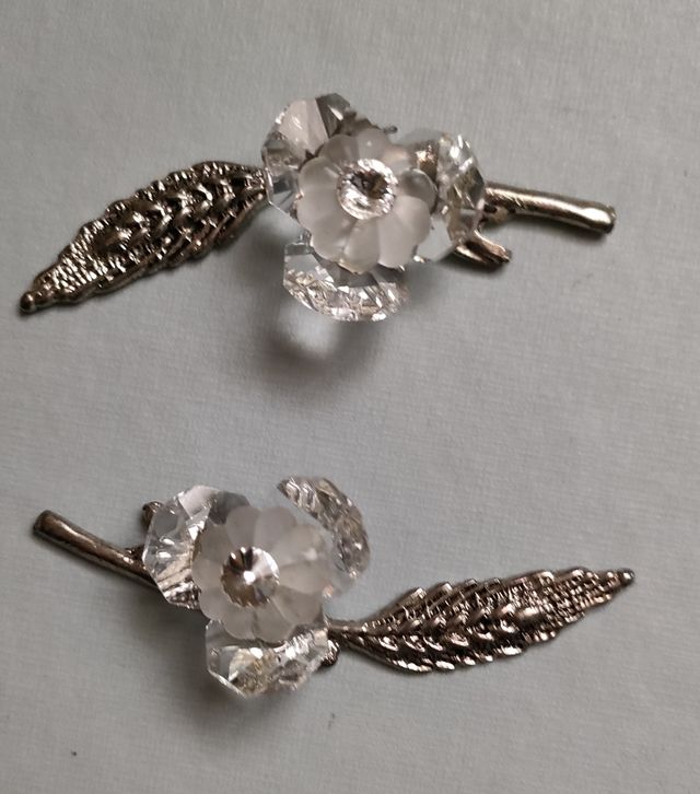 Stampato a forma di foglia allungata con al centro incastonata un fiore composto da perline trasparente