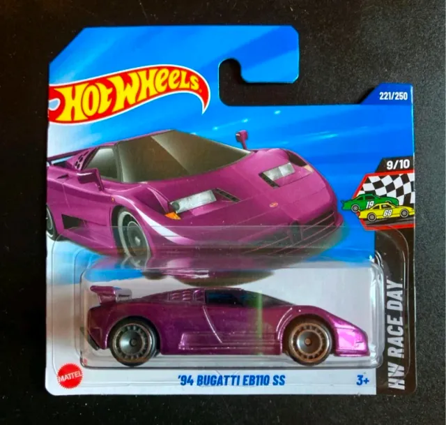 Modellino Hot Wheels della Bugatti EB110 SS del 1994. - Colore viola metallizzato. - Parte della serie HW Race Day. - Scala 1:64.