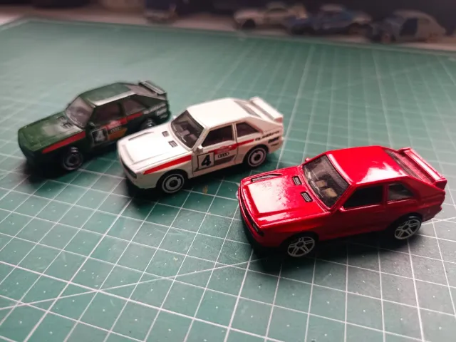 Confezione da 3 auto Hot Wheels modello Audi Quattro.