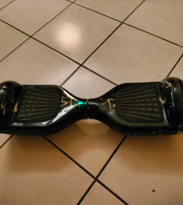Hoverboard nero con un design unico a fulmini dorati. Ideale per divertirsi. Con bluetooth - Design a fulmini dorati. - Luci LED verdi.