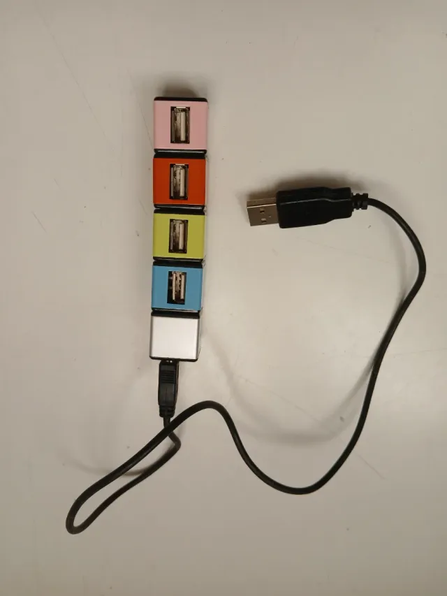 Dettagli del prodottoHub USB con quattro porte, ideale per espandere le connessioni del tuo computer. Design colorato e compatto.