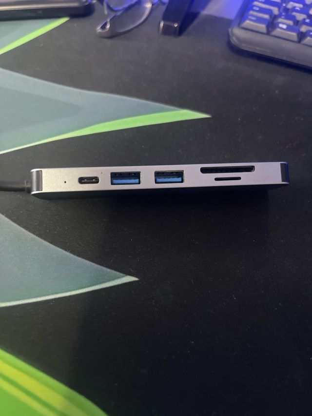 Adattatore e hub USB-C per Mac, ideale per espandere le porte del tuo computer. - Porta USB-C - Due porte USB-A - Slot per schede SD e microSD - Porta HDMI