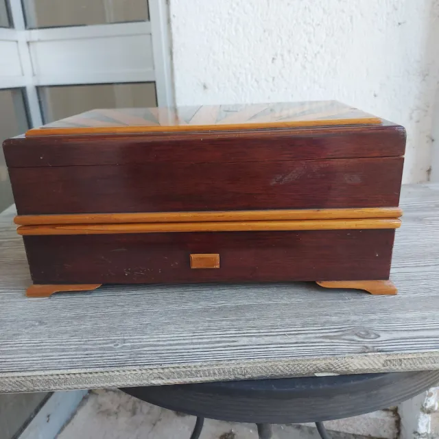 Presenta delle ammaccature ma rimane sempre un gran bell'oggetto, interno di cedro , intarsiato da artigiani Cubani una ventina di anni fa'