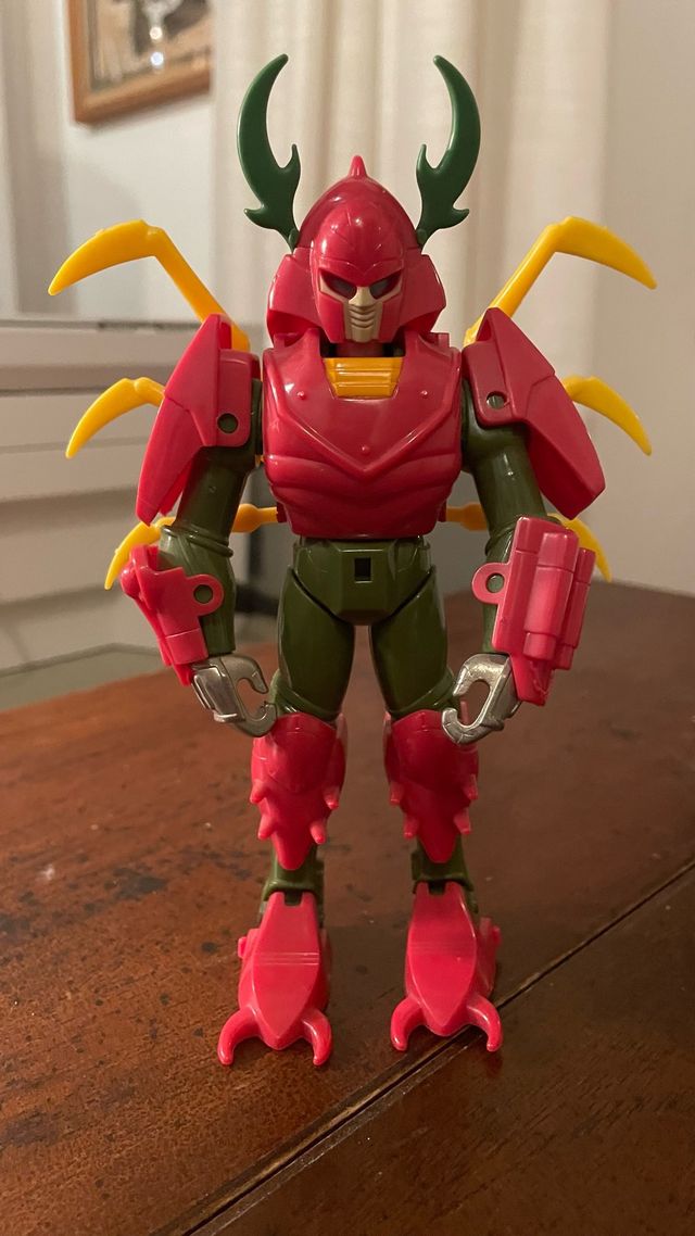 - Design ispirato a un insetto con dettagli rossi, verdi e gialli.