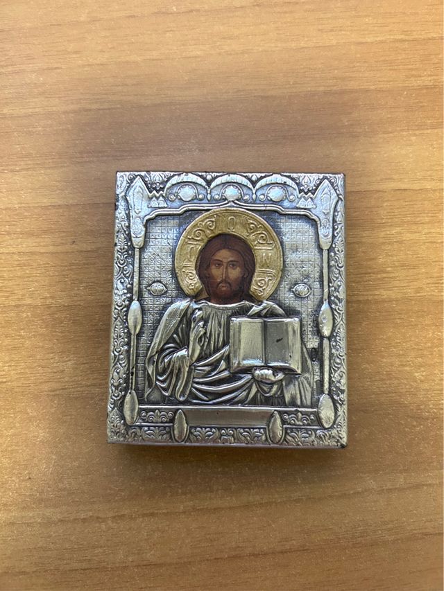 Quadretto Icona raffigurante il Cristo Pantocratore, una rappresentazione tradizionale di Gesù nell'arte bizantina e ortodossa. Misure. 7x6