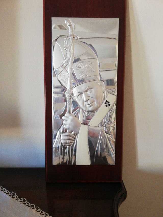 Icona d'argento si Papa Giovanni Paolo II 35x16 nuova in confezione originale.