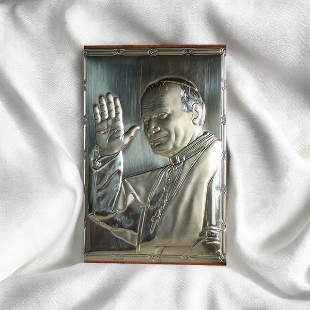 Magnifica icona in bassorilievo raffigurante San Giovanni Paolo II (Karol Wojtyła), un pregiato oggetto di arte sacra prodotto dalla rinomata manifattura italiana LORD GALLERY.