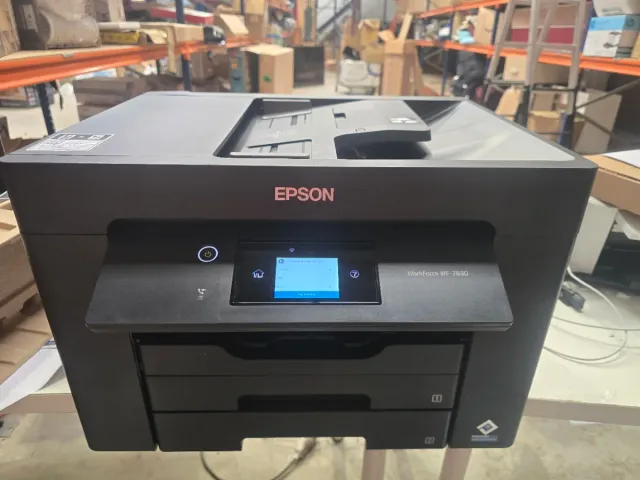Stampante multifunzione Epson WorkForce WF-7830 a colori in nero. - Schermo touch color. - Vassoi carta frontali. - Connettività Wi-Fi.