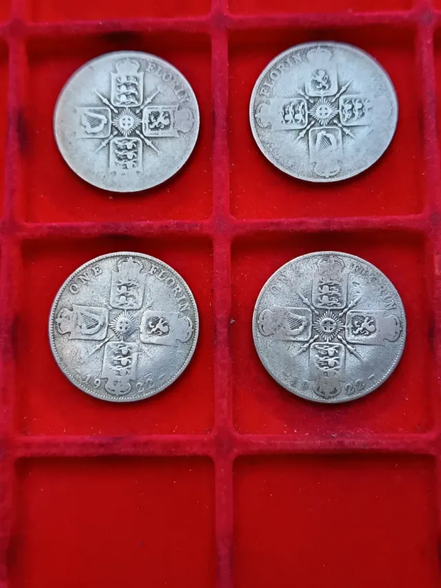 INGHILTERRA - 1 FIORINO 1922 N.4 MONETE ARGENTO.