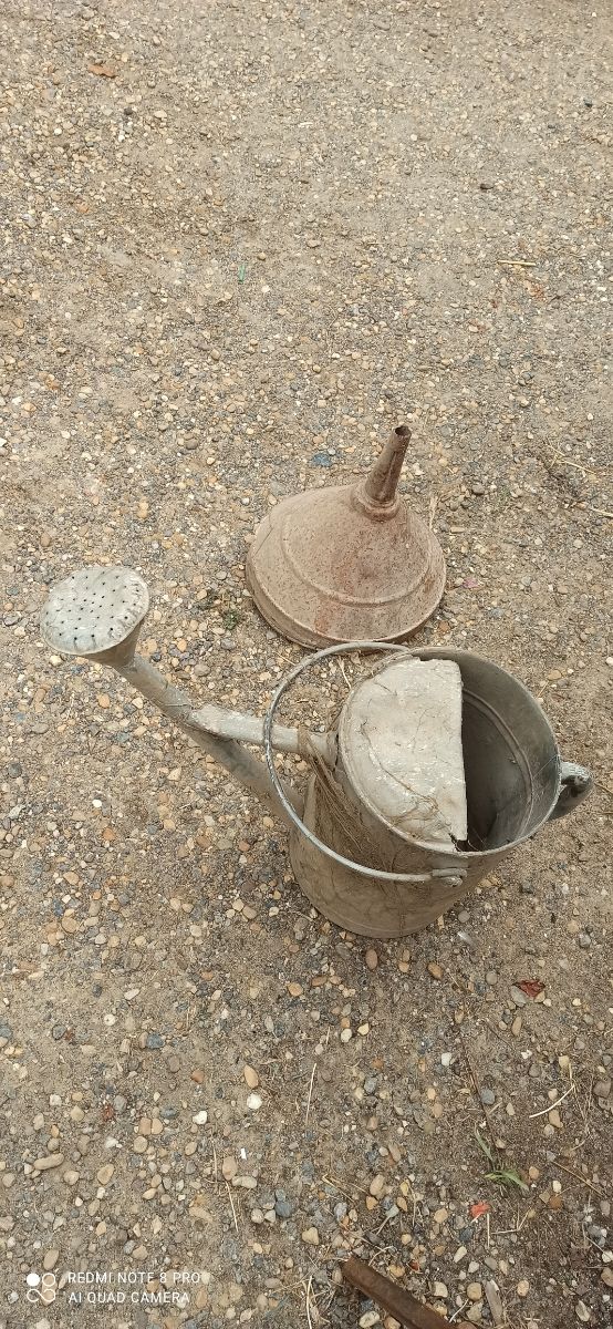 Come da foto vendo innaffiatoio e imbuto vintage. Mostrano segni di usura dovuti al tempo ma mantengono un fascino retrò. No spedizione per via delle dimensioni