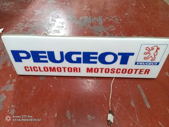 Dettagli del prodottoInsegna luminosa originale Peugeot per ciclomotori e scooter.