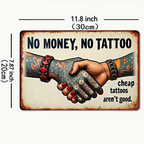 Insegna metallica Vintage - No Money No Tattoo 2D