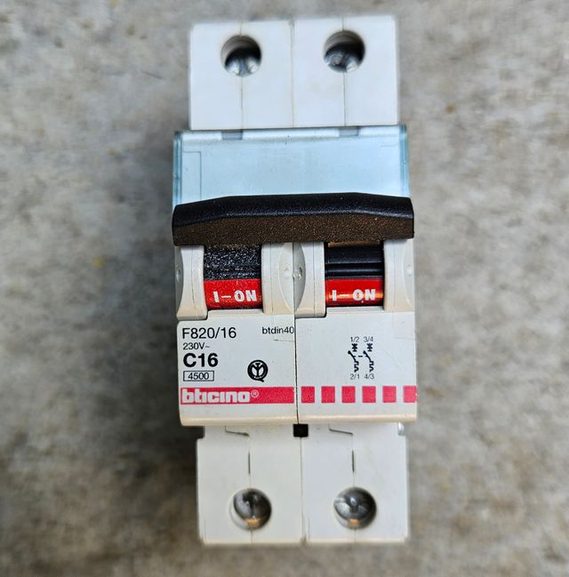 Interruttore magnetotermico Bticino F820/16 2P 16A