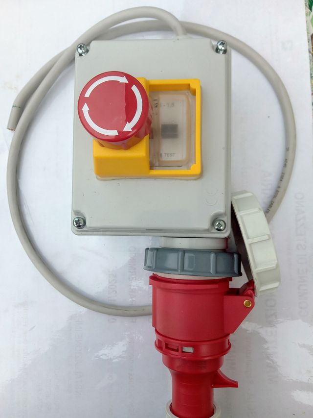 interruttore magnetotermico salvamotore. Com fungo emergenza e bobina di sgancio+ presa 16A