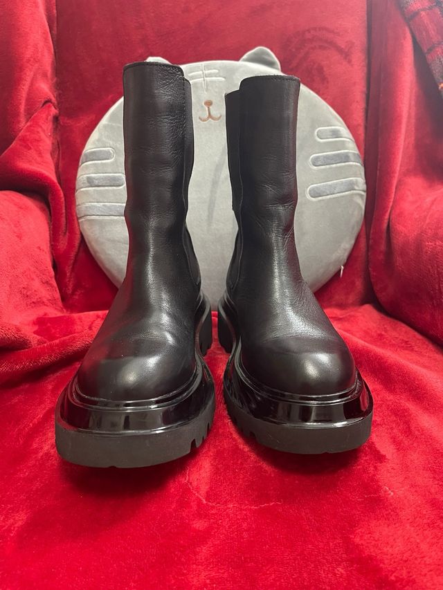 Inuovo Anfibi N 38 Nero nuovi Pelle