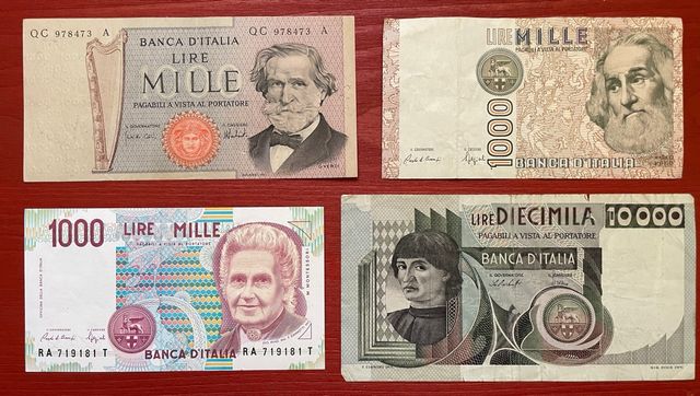 - 1 banconota da 1.000 Lire con Giuseppe Verdi.