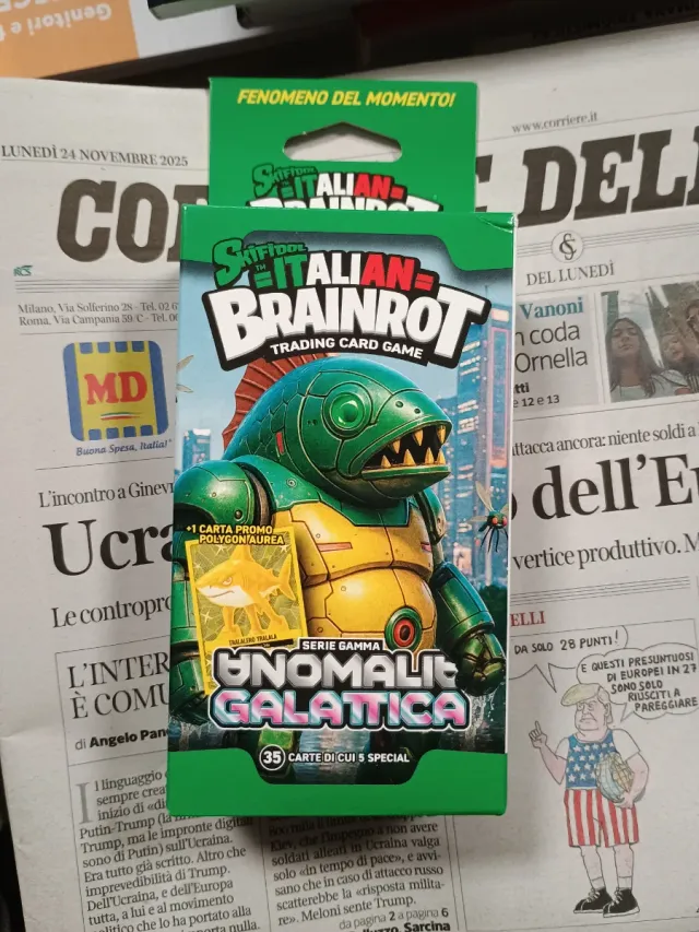 Box della serie Gamma di Italian Brainrot. - Contiene 35 carte di cui 5 speciali. - Include 1 carta promo Polygon Aurea.
