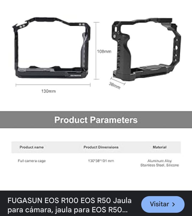 Dettagli del prodottoGabbia in alluminio per fotocamere Canon EOS R100 e R50. Progettato per proteggere le apparecchiature e fornire punti di montaggio aggiuntivi.