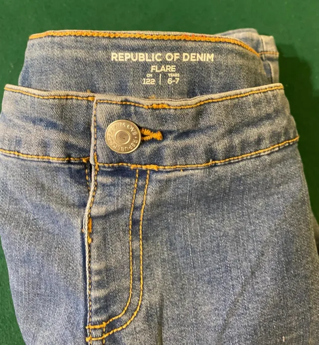 Jeans a zampa per bambina. - Modello Flare. - Taglia 122 / 6-7 anni. - Marca Republic of Denim.
