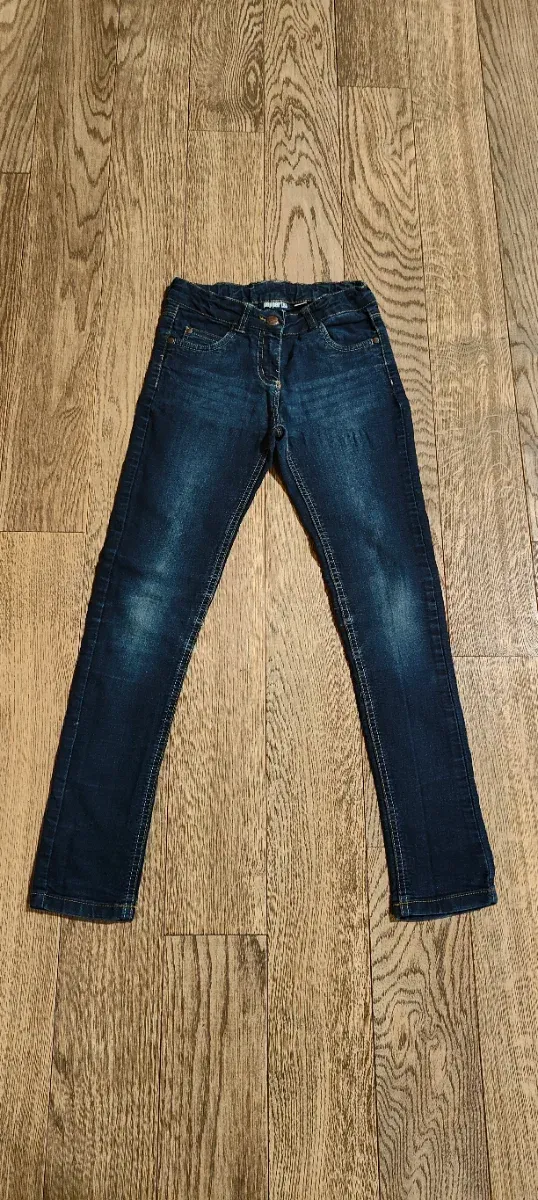 Usati in ottime condizioni. Jeans, lavaggio blu scuro, TG. 10-11 anni (146 cm) da bambina con elastico in vita, passanti per la cintura in vita, tasche frontali, tasche sul retro e tessuto 79% cotone, 19% poliestere e 2% elastan.