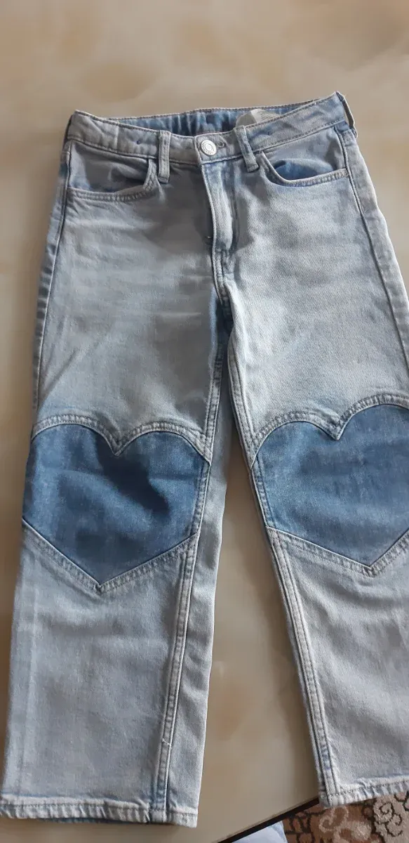 Dettagli del prodottoJeans chiari per bambina H&M, taglia 5/6 anni. Presentano un simpatico dettaglio a forma di cuore sulle ginocchia. Usati ma tenuti in buono stato.
