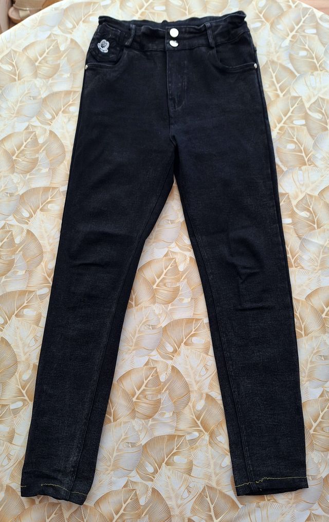 Dettagli del prodottoJeans SJ neri a vita alta con piccolo ricamo di Mickey Mouse sul davanti. Chiusura con cerniera e due bottoni; tasche anteriori e posteriori. Orlo inferiore un po' scucito, per il resto in ottimo stato. Tessuto 65% cotone e 35% poliestere, sono molto elastici. Taglia XL bambina: vita 30 cm, fianchi 40 cm, h cavallo 27 cm, lunghezza 91,5 cm, fondo gamba 12,5 cm