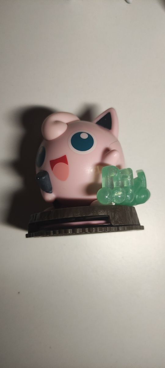 Dettagli del prodottoPersonaggio di Jigglypuff proveniente da un Kinder Sorpresa. La figura è di colore rosa con dettagli blu e rossi.