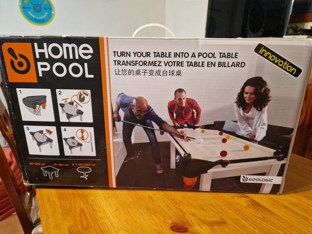 Dettagli del prodottoTrasforma il tuo tavolo da pranzo in un tavolo da biliardo con questo gioco Home Pool. È facile da montare e smontare. Progettato per tavoli da 95-220 cm di lunghezza e 75-120 cm di larghezza. Altezza regolabile da 110-230 cm. Include tutto il necessario per giocare. La descrizione è stata tradotta automaticamente.