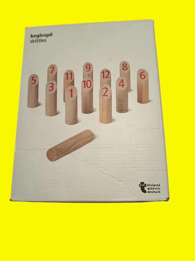 Dettagli del prodottoGioco di bocce in legno Keglespil Skittles, progettato in Danimarca. Include 10 birilli numerati e 1 mazza. Materiale: legno. Design: Keglespil Skittles. Origine: progettato in Danimarca. La descrizione è stata tradotta automaticamente.