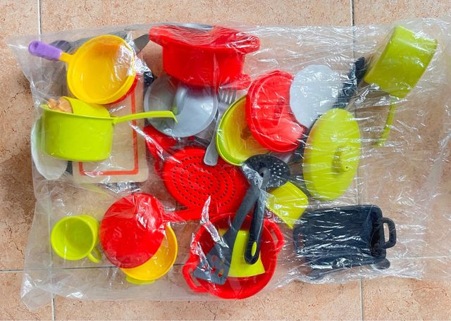 Dettagli del prodottoSet di giochi da cucina con pentole, padelle, piatti e utensili. Colori disponibili: rosso, giallo, verde e grigio. Ideale per giochi di imitazione. La descrizione è stata tradotta automaticamente.