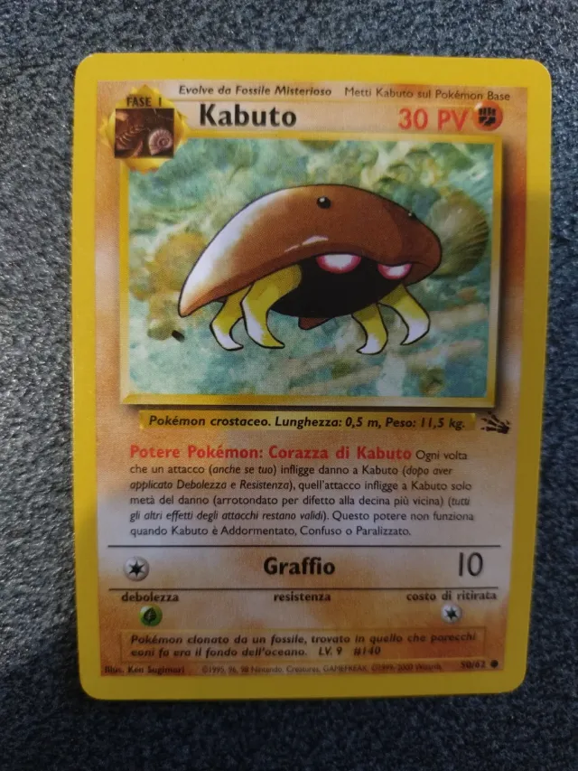 Carta Pokémon di Kabuto, set fossil - Numero carta: 50/62 Piccoli segni sul fronte
