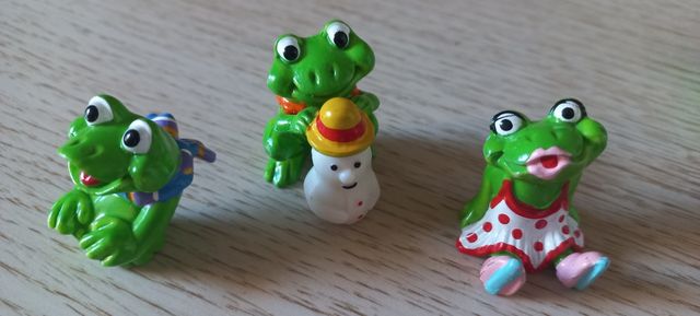 Dettagli del prodottoSet di 3 simpatiche ranocchie della Kinder Ferrero del 1993. Sono in ottime condizioni, perfette per i collezionisti!