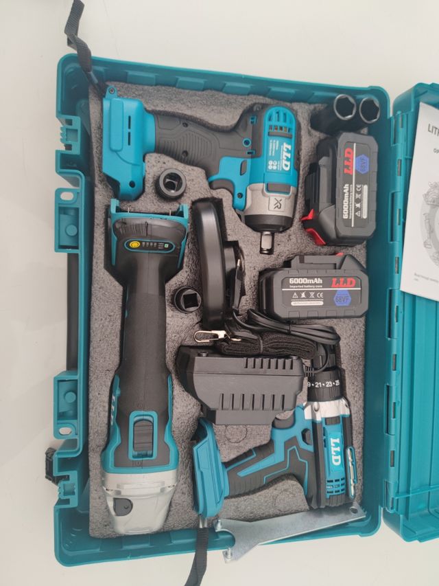 Dettagli del prodottoKIT 3 ATTREZZI PROFESSIONALI CON BATTERIE AVVITATORE SVITABULLONI E SMERIGLIATRICE
