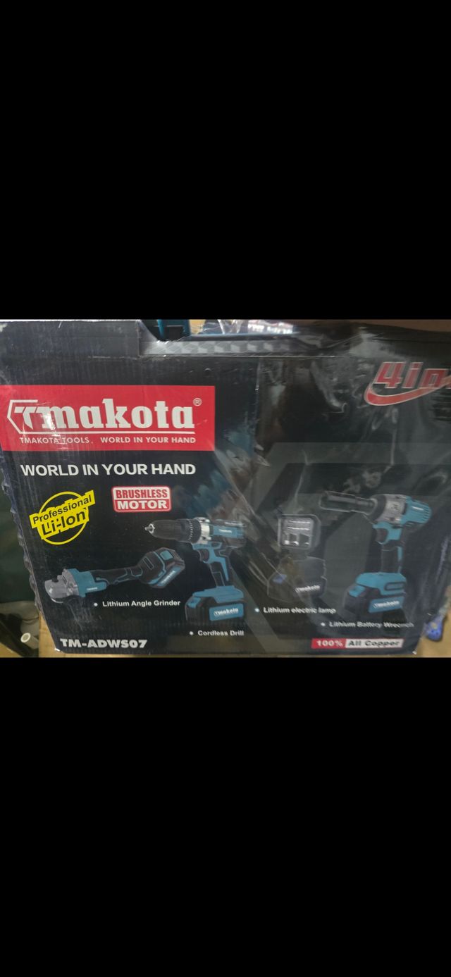 Set di attrezzi professionali Makota. - Avvitatore a percussione - Smerigliatrice angolare - Lampada elettrica - Avvitatore a batteria