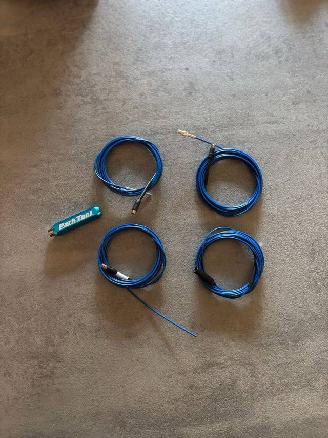 Dettagli del prodottoVendo kit cavi per bici Park Tool, perfetti per riparazioni fai da te. Sono inclusi 4 cavi nuovi, di colore blu e in ottime condizioni, e uno strumento magnetico Park Tool per la manutenzione. Ideali per chi ama personalizzare la propria bici. - 4 cavi nuovi di colore blu