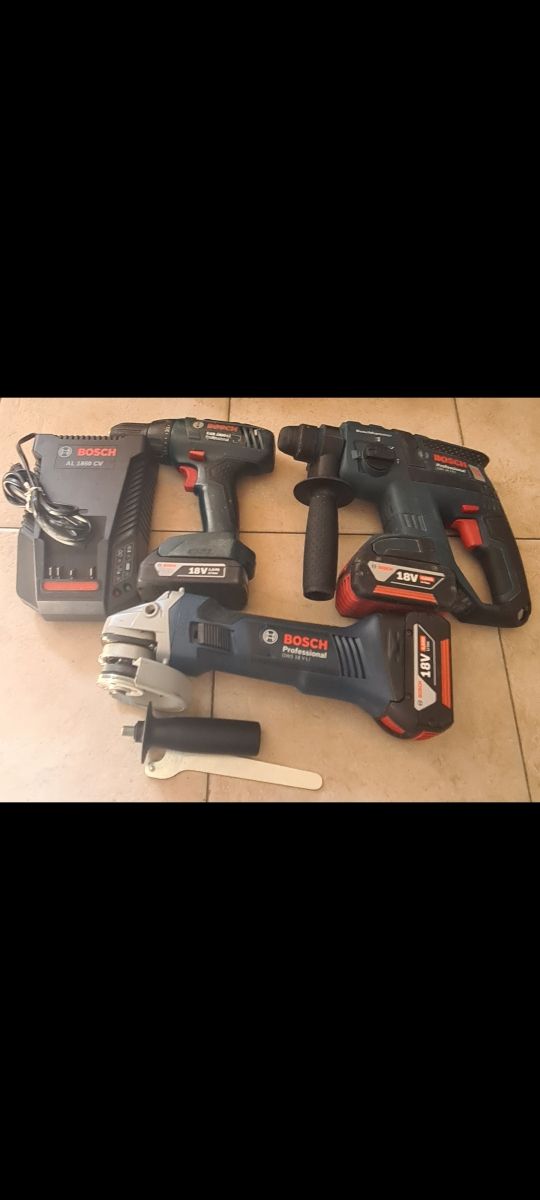 kit bosch 18v avvitatore, tassellatore , flessibile ,3 batterie + caricatore, come nuovi