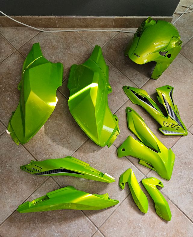 Dettagli del prodottoVendo kit completo di plastiche originali per il Benelli bn125 colorazione verde neon.