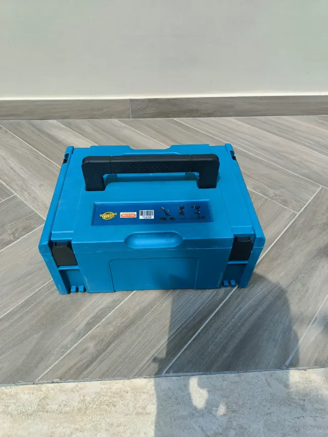 Dettagli del prodottoKit da lavoro 3 in 1 con tecnologia brushless. La valigetta è di colore blu.