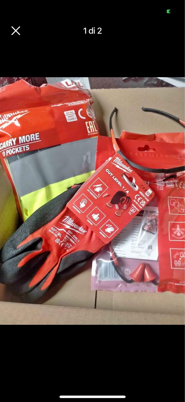 kit milwaukee composto da occhiali,giubbino alta viaibilita,archetto antirumore e guanti tutto nuovo originale