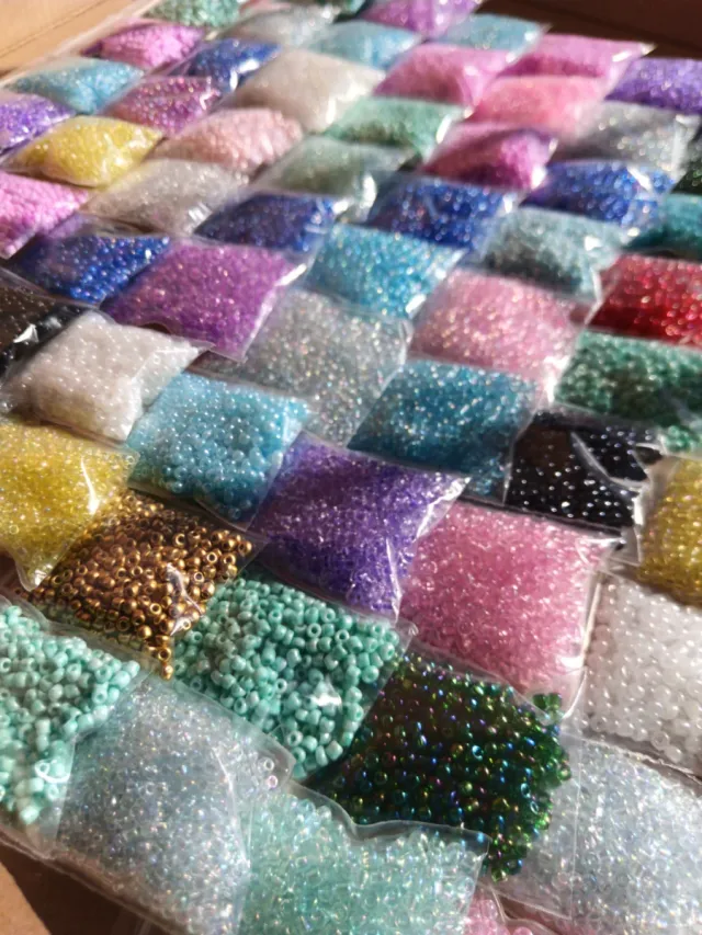 Lotto di perline in vetro, ideali per creazioni artigianali. - Peso totale: 1 kg - Materiale: Vetro - Ampia varietà di colori disponibili