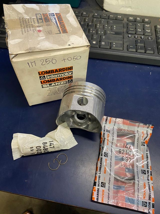 Vendo kit pistone Lombardini, nuovo, originale, mai usato. Il kit è completo di pistone, fasce elastiche e spinotto e 2 seerger. . - Modello motore : IM250+0.50