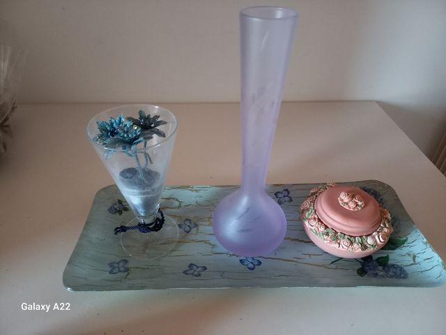 Kit di soprammobili 5 pezzi. 1 vaso 1 piramide, 1 vassoio, 1 portagioie, 1 vasetto.