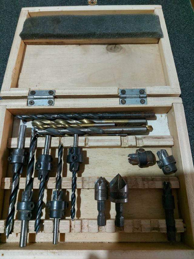 confezione in legno con punte e svasatori vari p.s. aggiungo un altro svasatore grande