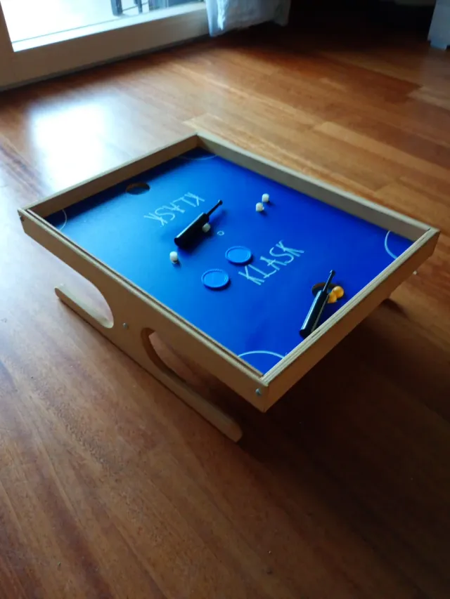 Gioco da tavolo Klask, perfetto per sfide divertenti. - Ottimo stato ma senza scatola - Superficie di gioco blu. - Include pedine e magneti. - Struttura in legno.