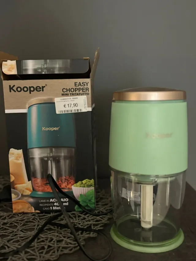 Dettagli del prodottoTritatutto Kooper Easy Chopper nella sua scatola originale, ideale per sminuzzare ingredienti.